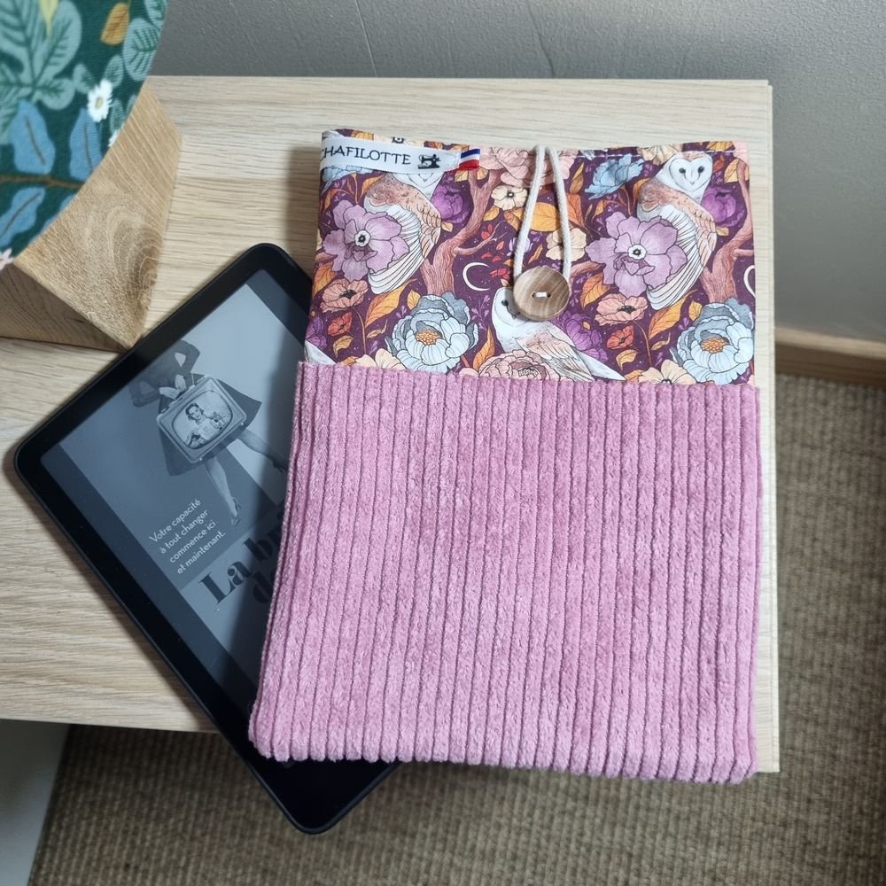 Pochette pour liseuse ou petit livre – Popeline de coton et velours