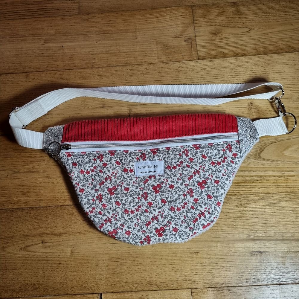 sac banane Fleurs rouges