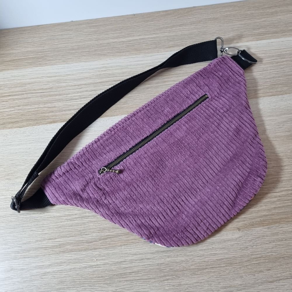 sac banane velours violet et turquoise