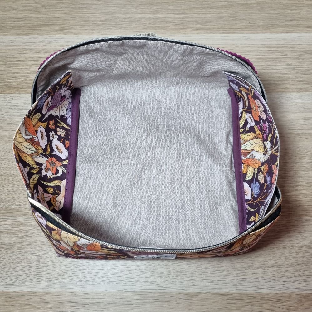 Parfaite comme trousse de toilette, trousse de maquillage, trousse à couture ou même trousse à crayons, elle s’adapte à tous vos besoins. Son tissu intérieur enduit la rend facile à nettoyer et résistante à l’humidité.