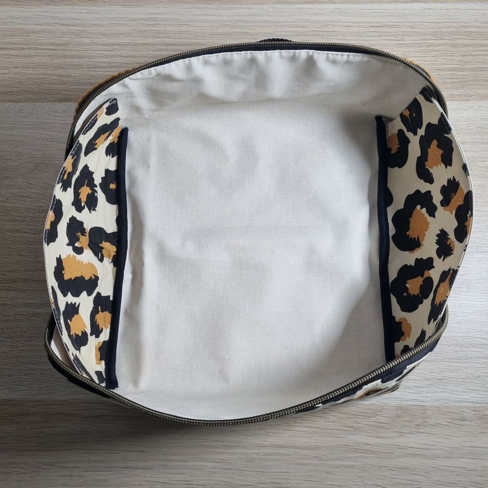 Parfaite comme trousse de toilette, trousse de maquillage, trousse à couture ou même trousse à crayons, elle s’adapte à tous vos besoins. Son tissu intérieur enduit la rend facile à nettoyer et résistante à l’humidité.
