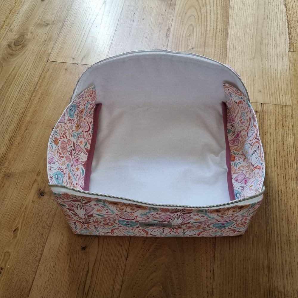 Parfaite comme trousse de toilette, trousse de maquillage, trousse à couture ou même trousse à crayons, elle s’adapte à tous vos besoins. Son tissu intérieur enduit la rend facile à nettoyer et résistante à l’humidité.
