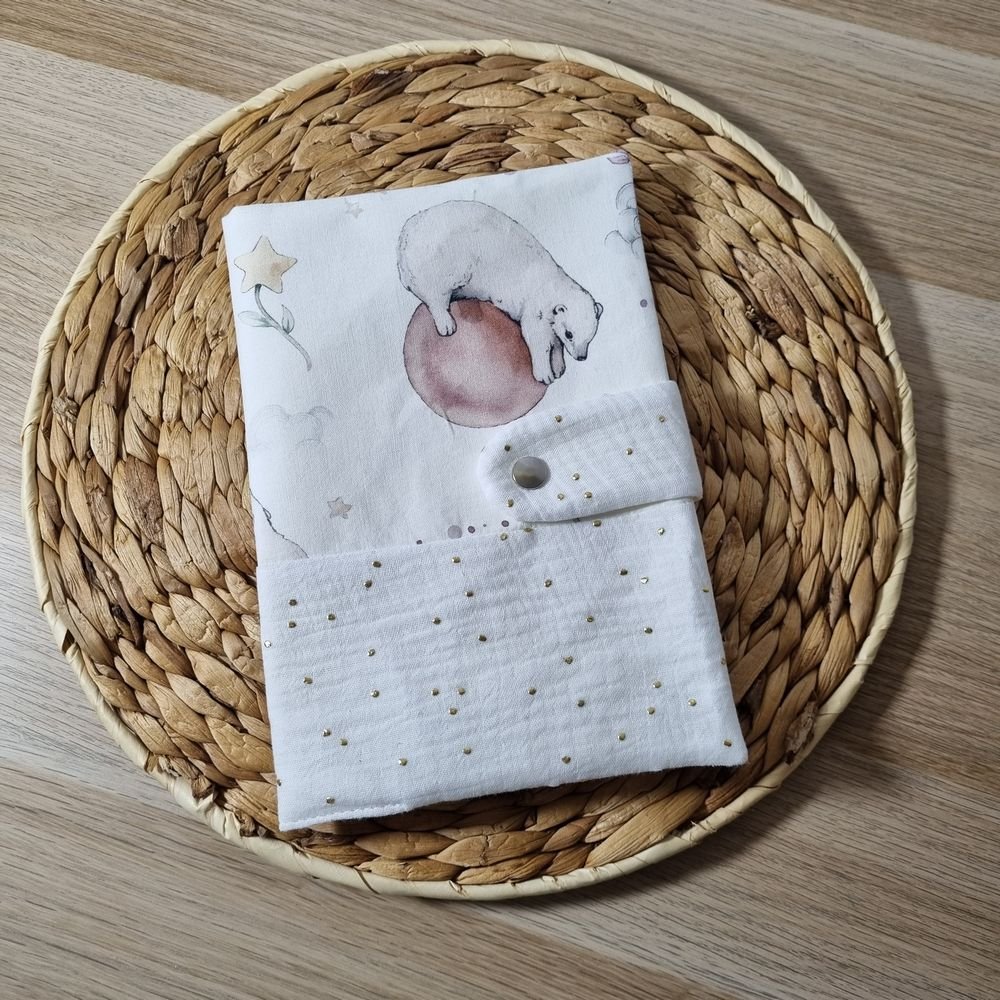 Offrez à votre enfant un protège carnet de santé aussi pratique que charmant, confectionné à la main dans mon atelier sous la marque Chafilotte, créatrice indépendante passionnée. Chaque modèle est une pièce unique, imaginée avec soin en associant une double gaze de coton pailletée à des motifs doux et poétiques.