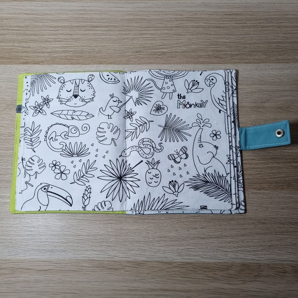 Composé de 3 tissus imprimés différents à colorier, il stimule la créativité tout en étant durable et écologique. Grâce à sa trousse intégrée, il se glisse facilement dans un sac à main et devient l’allié parfait lors des sorties au restaurant, des voyages ou dans les salles d’attente pour occuper les enfants… et même les adultes !