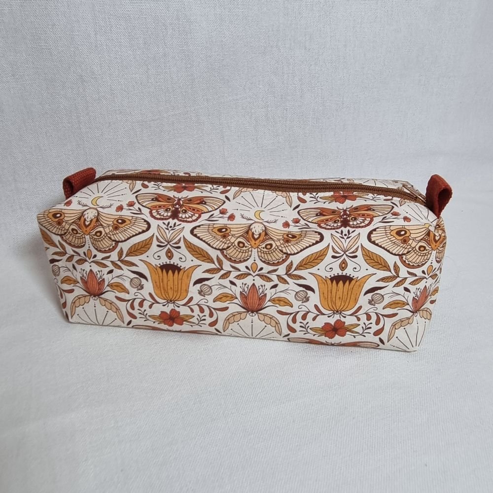 Idéale pour y glisser vos stylos, pinceaux, accessoires de maquillage ou petits trésors du quotidien, cette trousse se distingue par son design exclusif et son caractère singulier. Elle est à la fois pratique et esthétique : un véritable petit objet d’art textile à emporter partout !