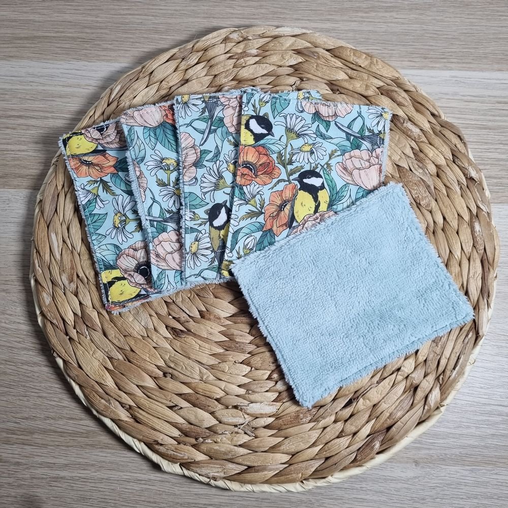 5 lingettes lavables mésanges